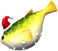 Festlicher Fugu kann beim Angeln in rot-grünen Wellen erhalten werden. Der Fisch taucht nur auf, wenn es regnet.